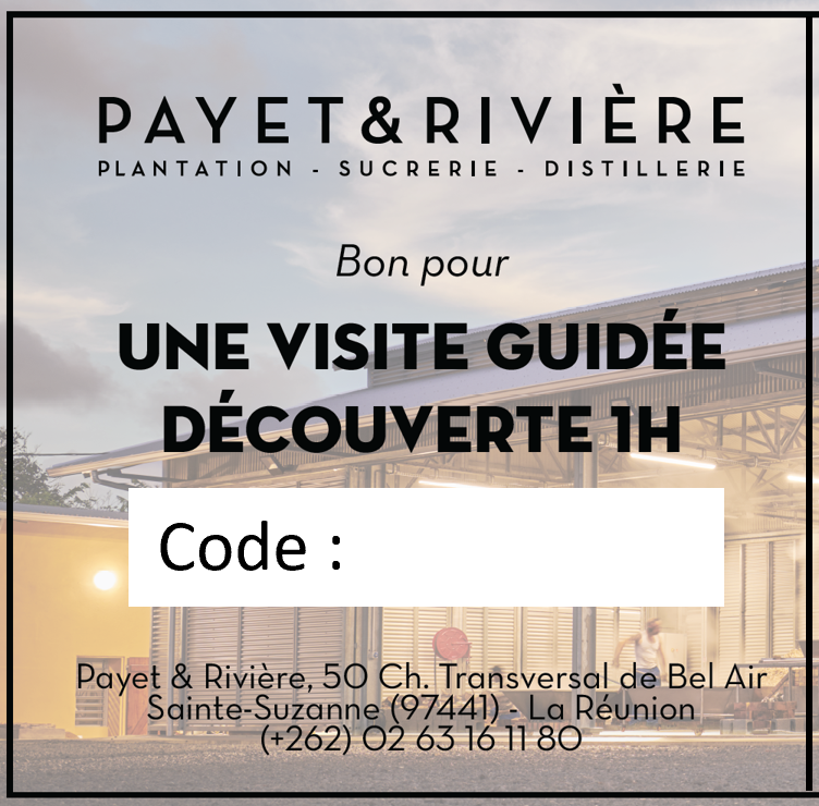 Offrez un bon digital pour une visite guidée d’une heure de notre sucrerie-distillerie artisanale située à Saine-Suzanne, La Réunion.